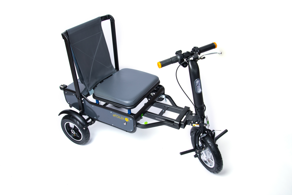 The Explorer’s unique design provides three modes of use: the standard Scooter Mode for driving; a temporary Chair Mode for sitting; and a compact Suitcase Mode for rolling along when folded. This versatility ensures the eFOLDi is always ready for any situation, whether you are driving, waiting, or travelling. The strong, rigid, aircraft-grade aluminium alloy frame provides stability and safety across multiple terrains.