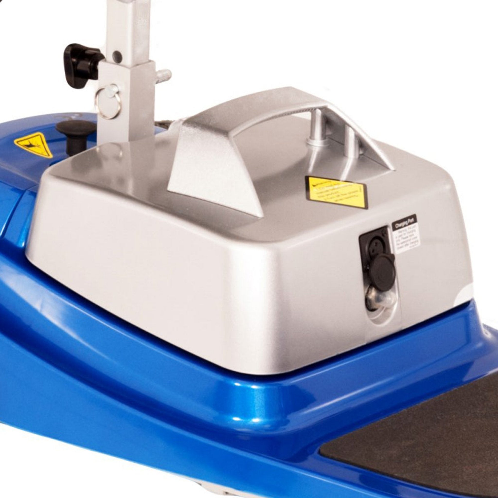 All batteries are easily removable for convenient off-board charging, and a second charging port is located in the tiller for easy access when the scooter is assembled.