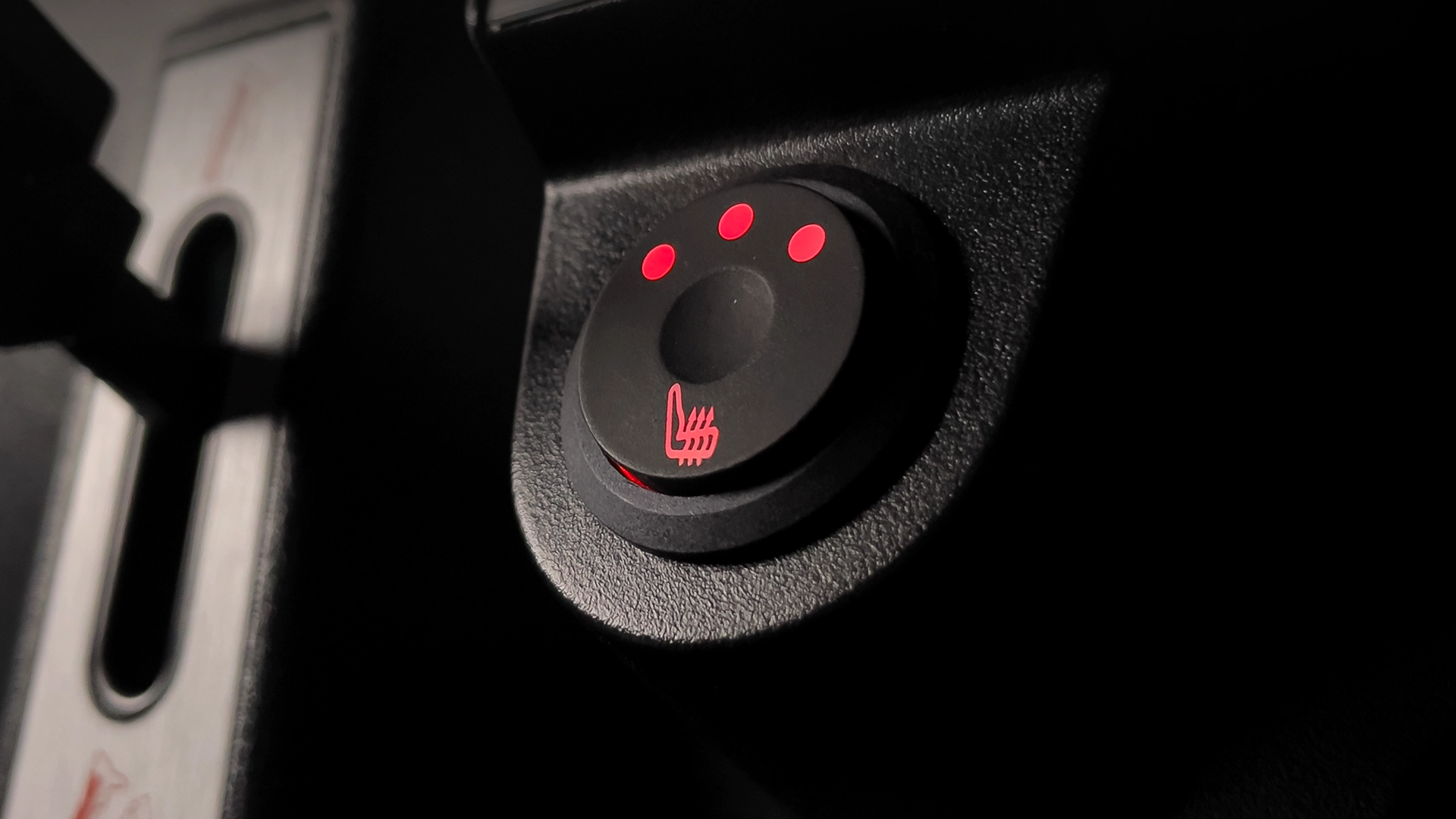 Premium heated seat features three temperature settings (low, medium, high) activated via simple touch button control. The heating system warms the seat cushion for comfortable use during cold weather, extending usage seasons and enhancing comfort year-round. Four-way adjustable driving position enables personalized ergonomics, while 90-degree swivel function and independent moving armrests ensure optimal accessibility. Crafted with durable, easy-clean fabric, the seat combines luxury comfort with practical maintenance.