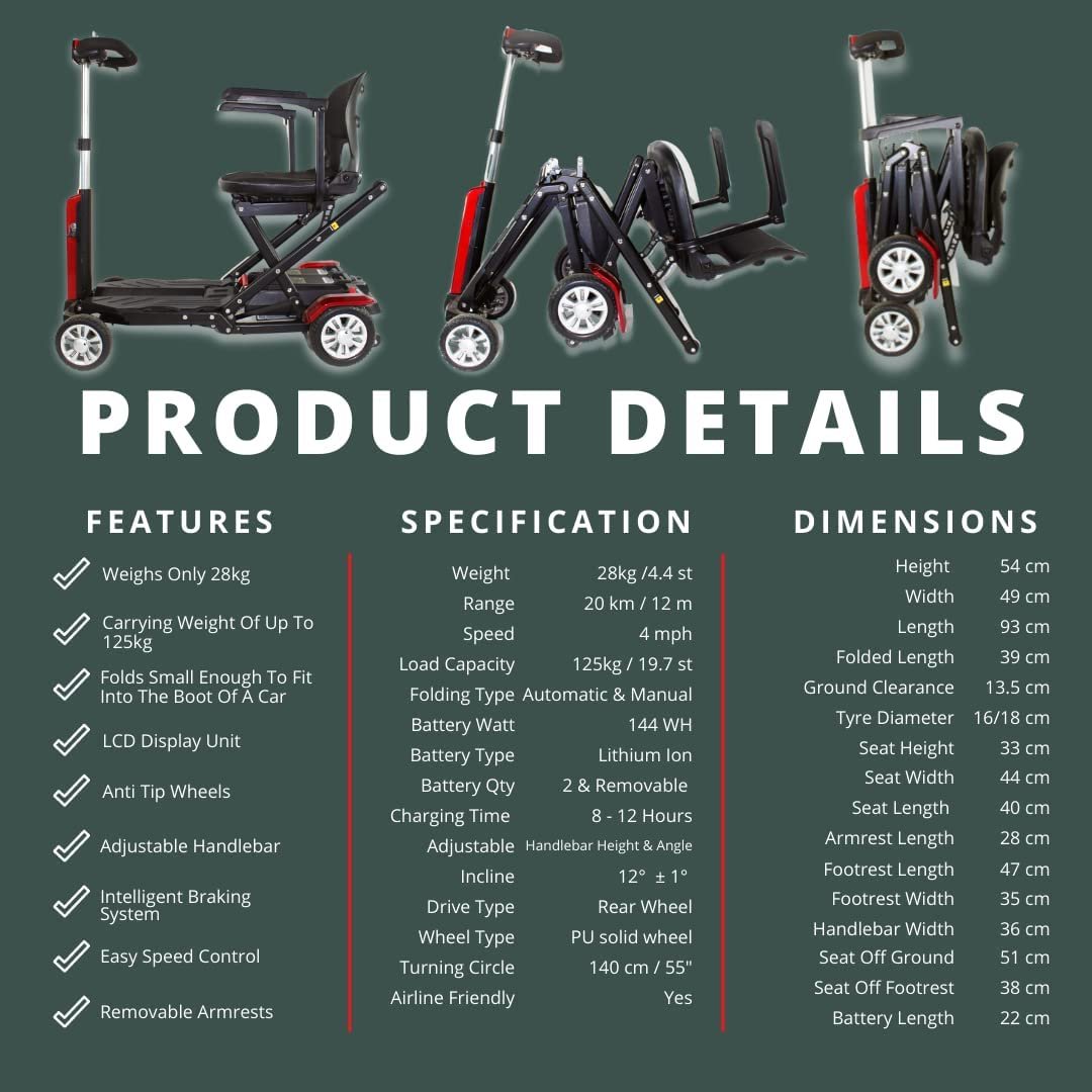 - Automatic folding mobility scooter – folds itself at the click of a button!